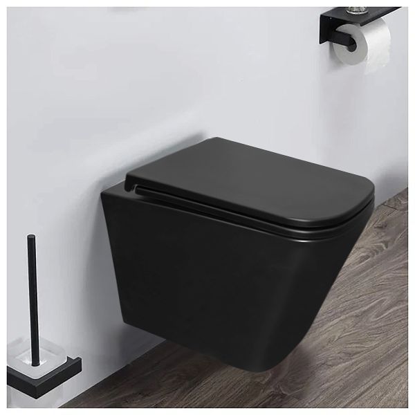 Купить в интернет-магазине "Gidro-butik" с гарантией от производителя унитаз подвесной Azario Teramo AZ-0052-UQ1MB черный безободковый с сиденьем микролифт Подвесная модель (для монтажа на инсталляцию).Материал - санфаянс.Безободковая конструкция чаши.Плоское быстросъемное дюропластовое сиденье с механизмом плавного опускания (микролифт).