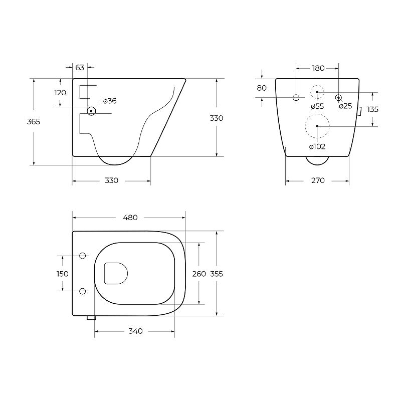 • Укороченный унитаз:
