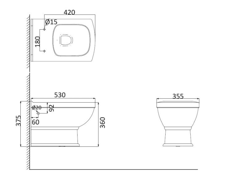 • Прилегание унитаза к стене: