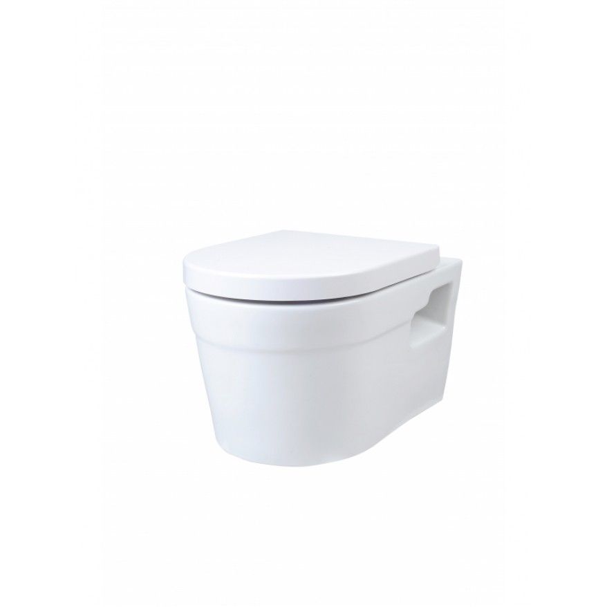 Компактный , подвесной унитаз , имеет крышку плавного закрывания , удобен в использовании .Спасибо персоналу за консультацию .
