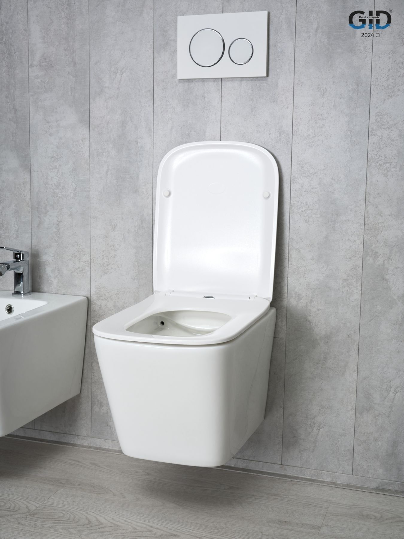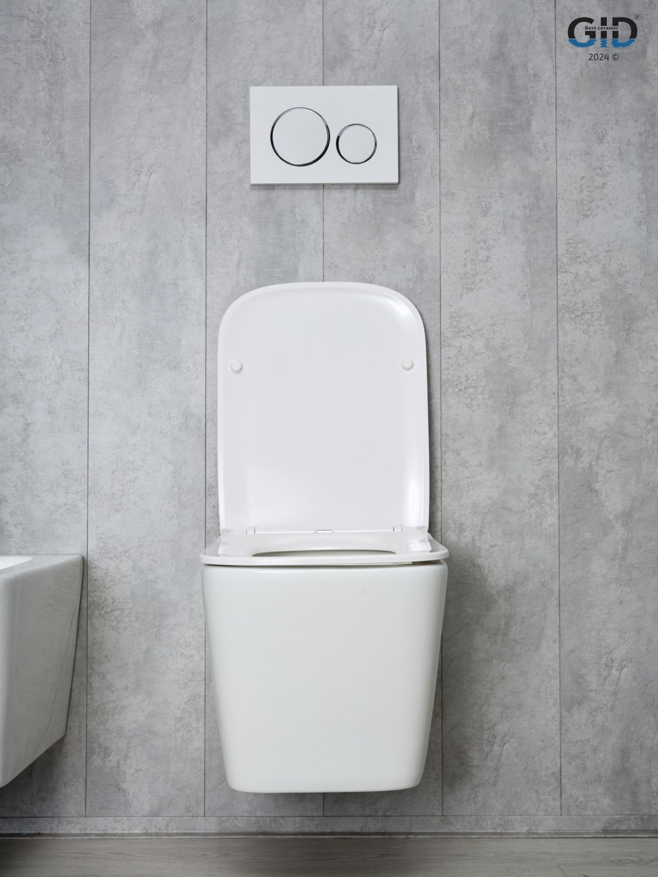 Серия Cuadrado — образец современного дизайна и испанского качества. Соответствие европейским стандартам гарантирует их долговечность. Подвесной безободковый унитаз GiD Tr2143 - это модель с горизонтальным выпуском, выполненная из мелкопористой керамики в белом глянцевом цвете. Оснащена быстросъёмным сиденьем из дюропласта с функцией микролифта, обеспечивающей плавное и бесшумное опускание крышки. Благодаря антигрязевому покрытию и воронкообразной квадратной чаше унитаз обеспечивает высокий уровень гигиены и легкость ухода. Комплект: подвесной унитаз GiD Tr2143 с креплениями для скрытого монтажа; сиденье с креплениями.