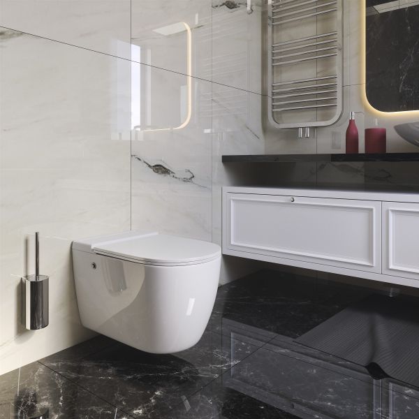 Безободковая система слива позволяет равномерно ополаскивать всю поверхность чаши.