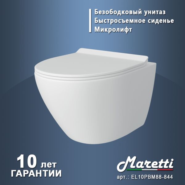 Унитаз подвесной Maretti Elena безободковый с микролифтом, EA10PBM88-844, белый купить