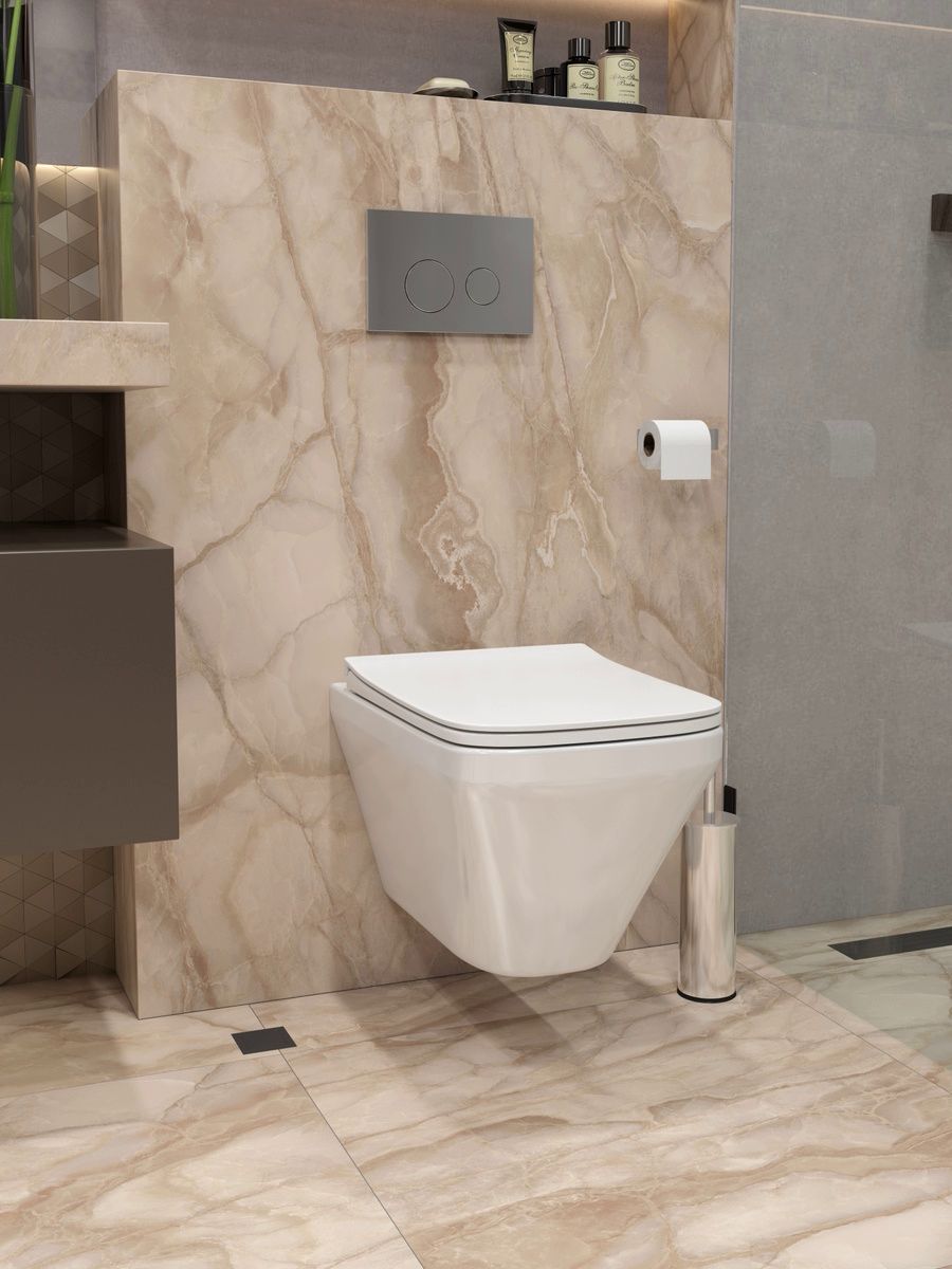 Представляем вашему вниманию подвесной унитаз Maretti Katrina KA10PBM20-844 в элегантном белом цвете. Он изготовлен из качественного санфарфора и отличается отсутствием ободка, что упрощает его гигиеническую очистку и позволяет избежать скопление загрязнений.Каскадная система смыва обеспечивает эффективное устранение загрязнений, а антивсплесковая система предотвращает появление неприятных брызг. Антигрязевое покрытие на поверхности унитаза помогает сохранить первозданный вид и упрощает уход за изделием.Данный унитаз комплектуется быстросъемным сиденьем с функцией микролифта, обеспечивающей плавное опускание сиденья без ударов. Межосевое расстояние для крепежных шпилек инсталляции составляет 18 сантиметров, что соответствует стандартам большинства инсталляций.Гарантия на этот товар составляет 10 лет, подтверждая его высокое качество и долговечность. Подвесной унитаз Maretti Katrina станет отличным выбором для тех, кто ценит стиль, комфорт и гигиену.
