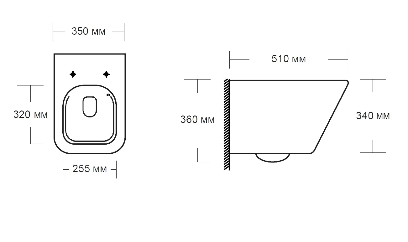 • Прилегание унитаза к стене: