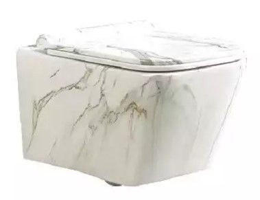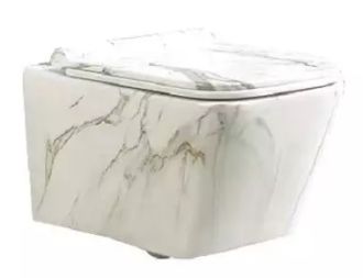 Безободковый подвесной унитаз SantiLine, сиденье микролифт, цвет серый мрамор, SL-5007MRB