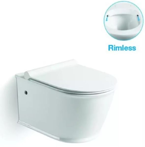 Безободковый подвесной унитаз SantiLine, сиденье микролифт, цвет белый, SL-5009