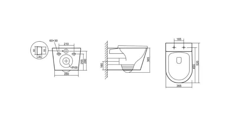 • Прилегание унитаза к стене:
