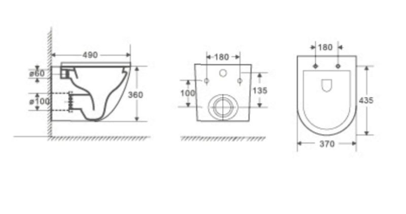 • Прилегание унитаза к стене: