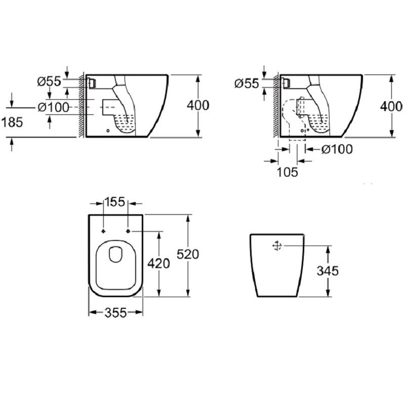 Прилегание унитаза к стене:вплотную