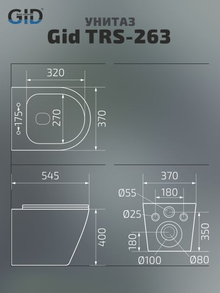 Унитаз приставной Gid TRS-263 62211Y белый 52x36x41 купить