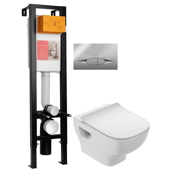 Унитаз с инсталляцией Jacob Delafon Struktura E21754RU-00 с сиденьем Микролифт и клавишей смыва Хром