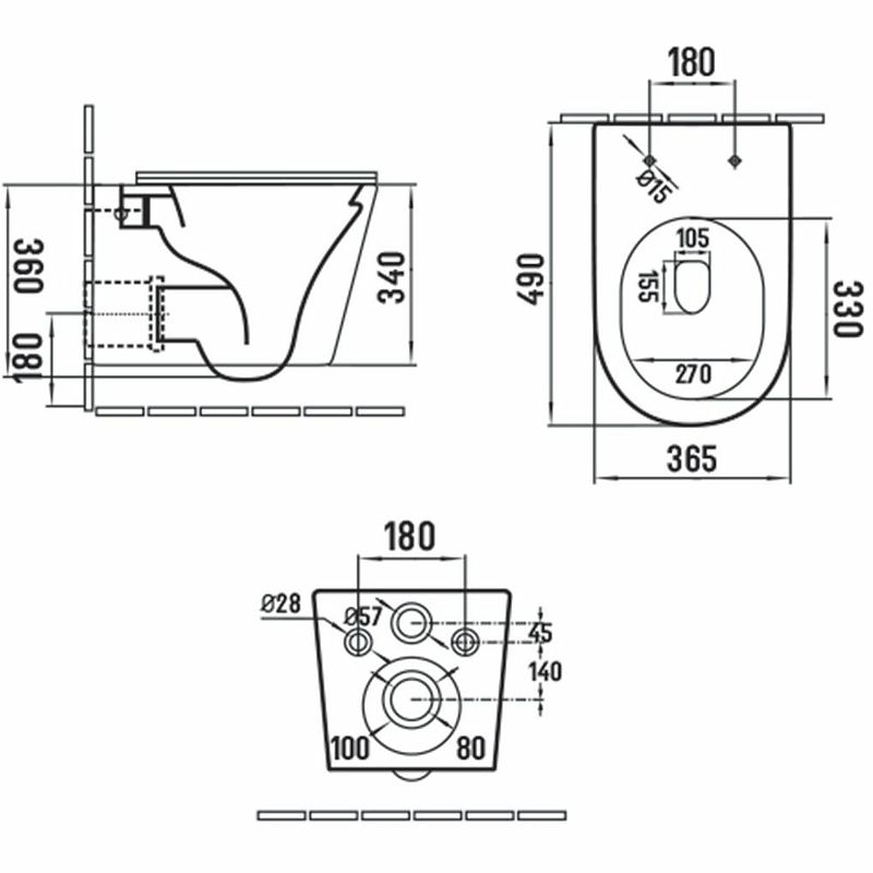 • Прилегание унитаза к стене: