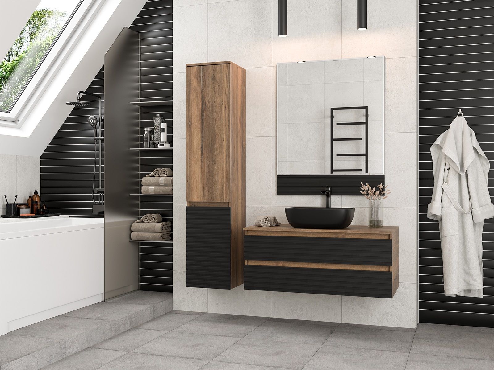 Шкаф-пенал для ванной комнаты – это стильное решение, которое гармонично вписывается в современный интерьер. Его элегантные линии и аккуратные формы создают атмосферу чистоты и порядка, что особенно важно в таком интимном пространстве. Изготовленный из качественных влагостойких материалов, этот шкаф обеспечивает долговечность и надежность, даже в условиях повышенной влажности.Основное преимущество шкаф-пенала заключается в его вместительности. Удобные полки и ящики позволяют организовать пространство и разместить все необходимое: от косметики до бытовых принадлежностей. Каждая деталь продумана для удобства использования, что делает утренние и вечерние ритуалы более приятными.Будь то строгий минимализм или уютный скандинавский стиль, шкаф-пенал станет акцентом, который подчеркивает индивидуальность вашего пространства. Не упустите возможность преобразить свою ванную комнату, добавив в нее этот элегантный и практичный элемент.