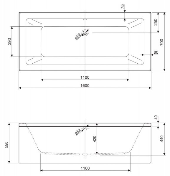 Ванна акриловая Cezares PLANE MINI-160-70-42-W37