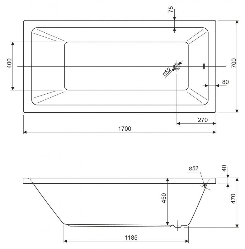 Ванна акриловая Cezares PLANE SOLO-170-70-45-W37