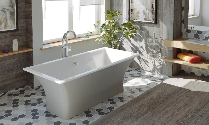 Прямоугольная отдельностоящая ванна из литьевого мрамора в трех цветах внешней отделки. Размер ванны 170x80 см. Ванна в комплекте с опорами. Автослив приобретается отдельно.Отдельностоящая ванна Мадрид отличается плавными линиями изгибов и прочностью литьевого камня. Основные преимущества ванн из литьевого камня: они очень прочны и не уступают по своей крепости натуральному граниту; ванны из мраморной крошки отлично удерживают температуру и не дают воде быстро остывать; ванны очень теплые на ощупь; максимальное шумопоглощение. Ванну Мадрид можно заказать с цветной внешней стороной в цветах: белый; серый; чёрный.