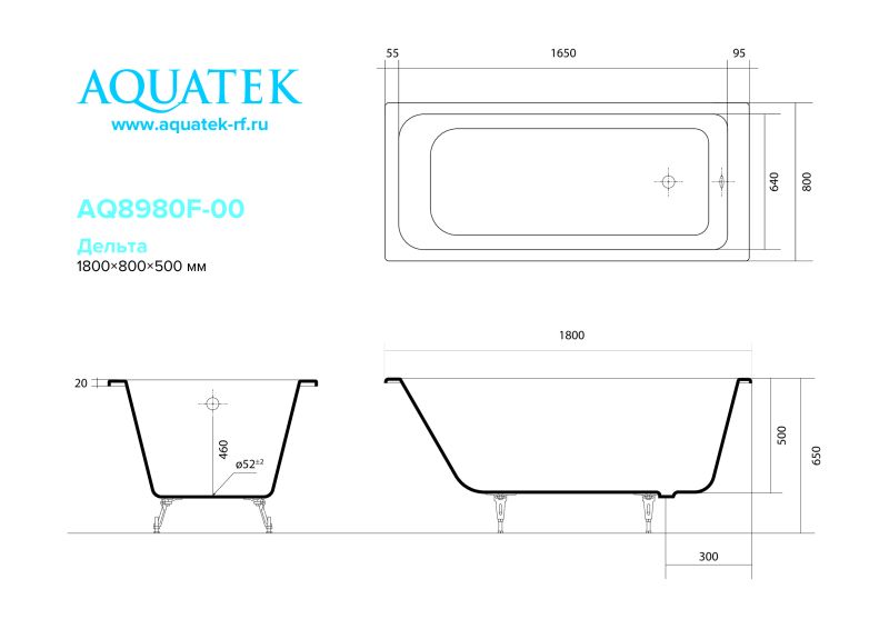 Ванна чугунная Aquatek Дельта AQ8980F-00 180х80 см купить