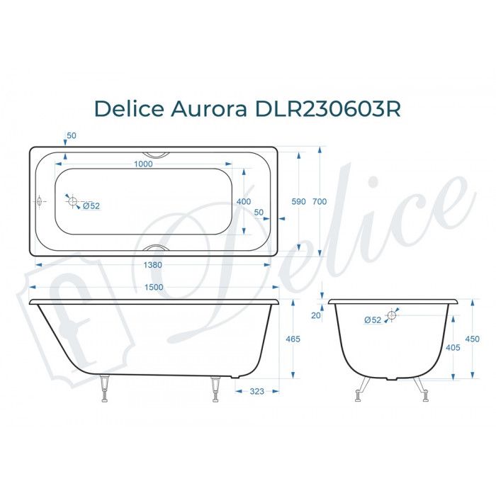 Ванна чугунная Delice Aurora DLR230603R 150x70 с отверстиями под ручки купить