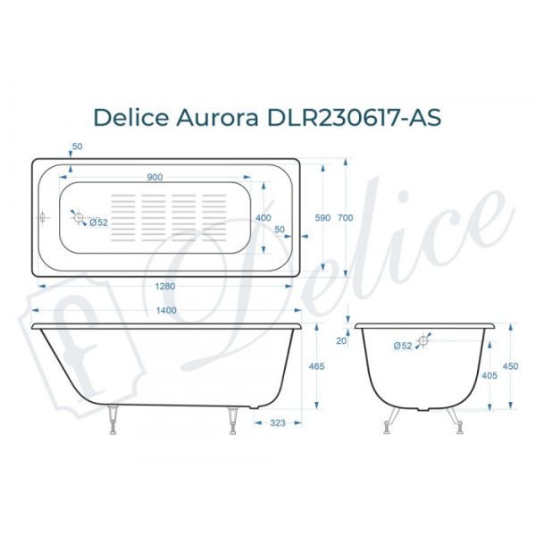 Ванна чугунная Delice Aurora DLR230617-AS 140х70 с антискользящим покрытием купить