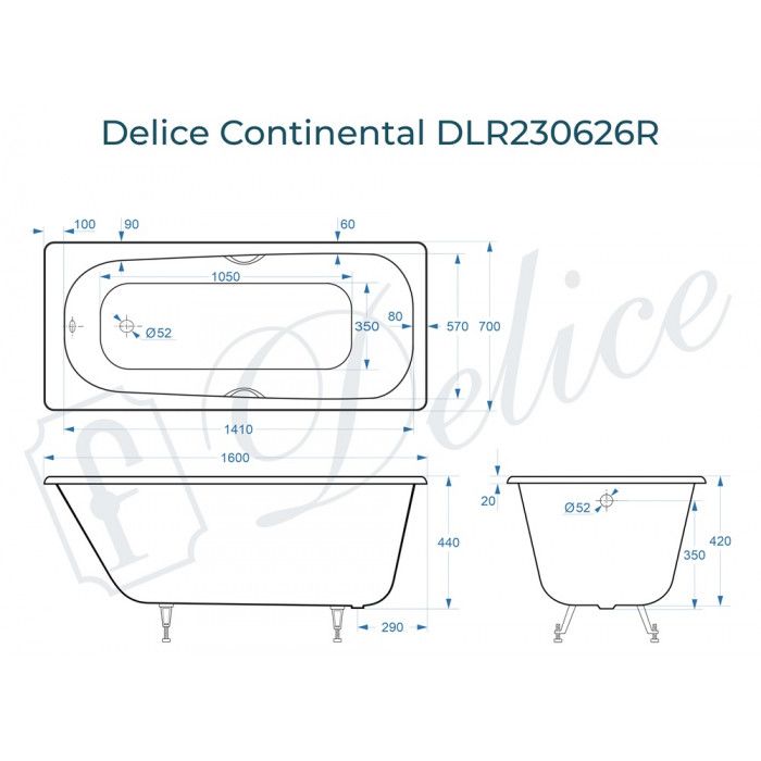 Ванна чугунная Delice Continental DLR230626R 160х70 с отверстиями под ручки купить