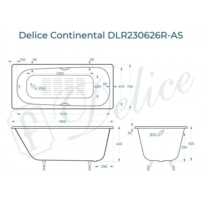 Delice Continental 160х70 с отверстиями под ручки - это уютная стильная модель чугунной ванны для вашего дома. Дизайн ванны спроектирован на основе классической формы с учетом современных тенденций в сантехнике. Внутреннее пространство чаши имеет увеличенный объем, анатомическую форму и широкое дно для максимального комфорта при эксплуатации. Continental 160х70  - это отличное решение для небольших и средних ванных комнат.