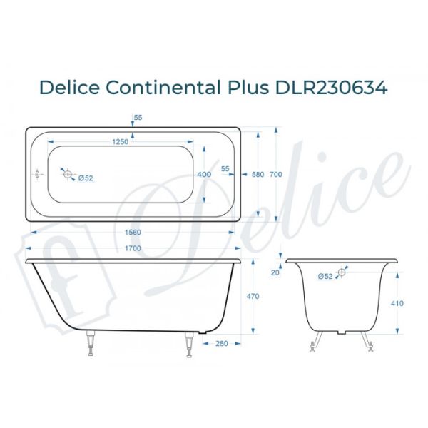 Ванна чугунная Delice Continental PLUS DLR230634 170х70 см