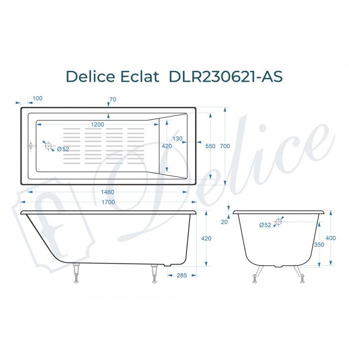 Ванна чугунная Delice Eclat DLR230621-AS 170х70 с антискользящим покрытием купить