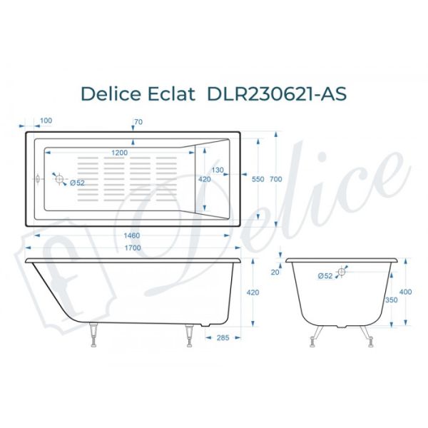 Ванна чугунная Delice Eclat DLR230621-AS 170х70 с антискользящим покрытием