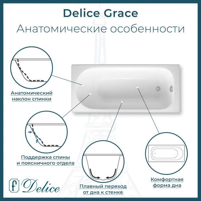 Ванна чугунная Delice Grace DLR230643-AS 170х70 с антискользящим покрытием купить