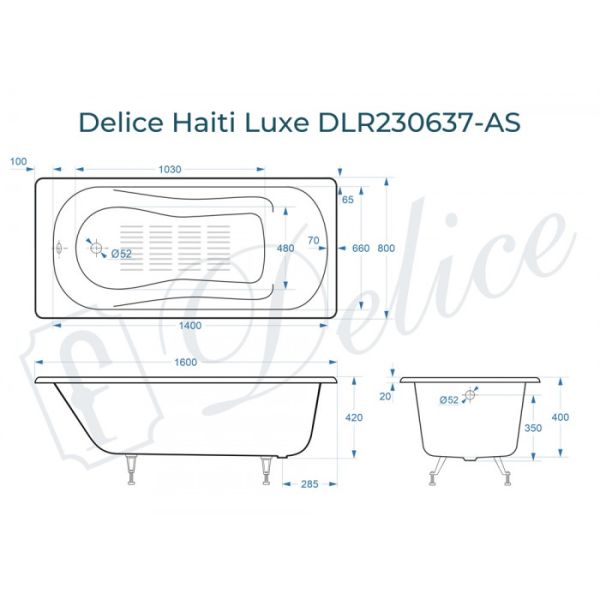 Ванна чугунная Delice Haiti Luxe DLR230637-AS 160х80 с антискользящим покрытием купить