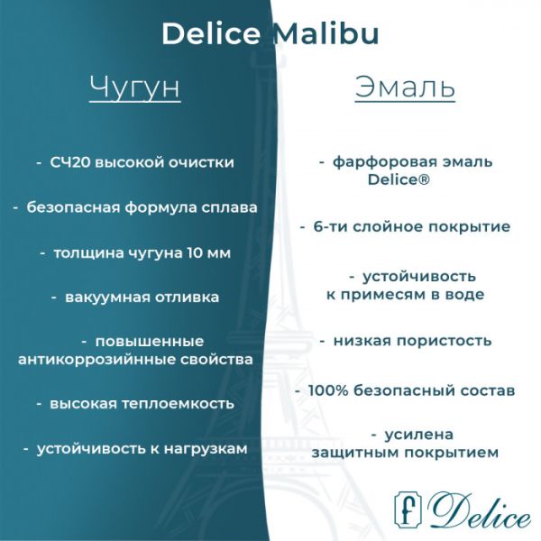 Ванна чугунная Delice Malibu DLR230609R 170x75 с отверстиями под ручки купить