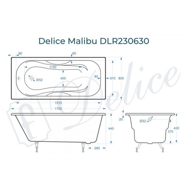 Ванна чугунная Delice Malibu DLR230630 170х80 белая