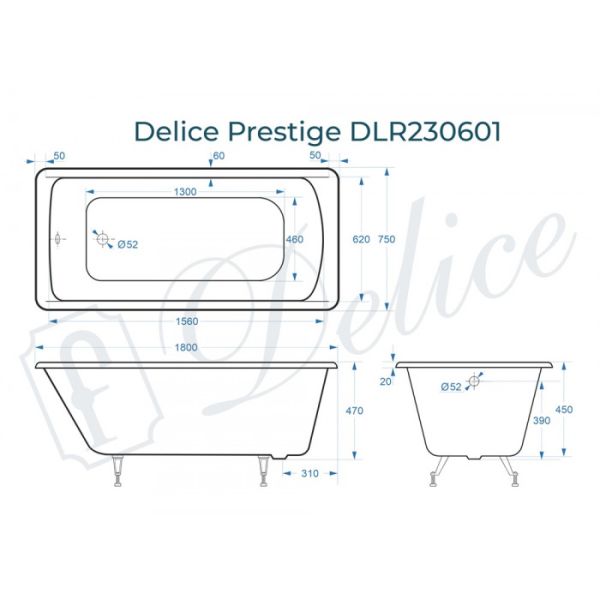 Ванна чугунная Delice Prestige DLR230601 180х75