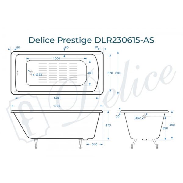 Ванна чугунная Delice Prestige DLR230615 170х80