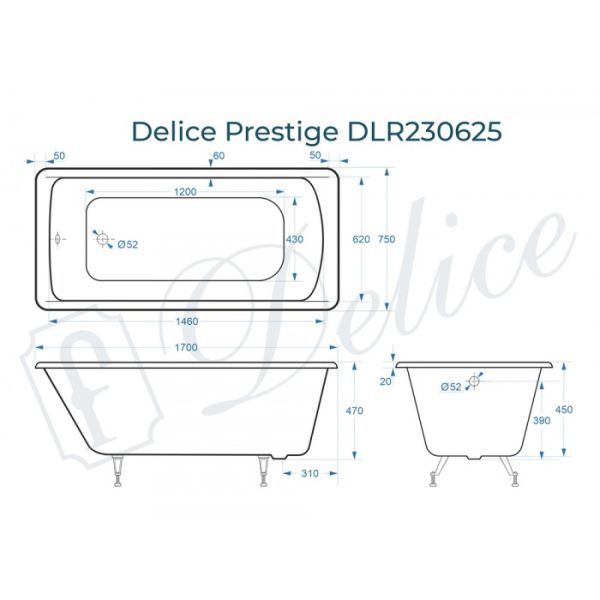 Ванна чугунная Delice Prestige DLR230625 170х75