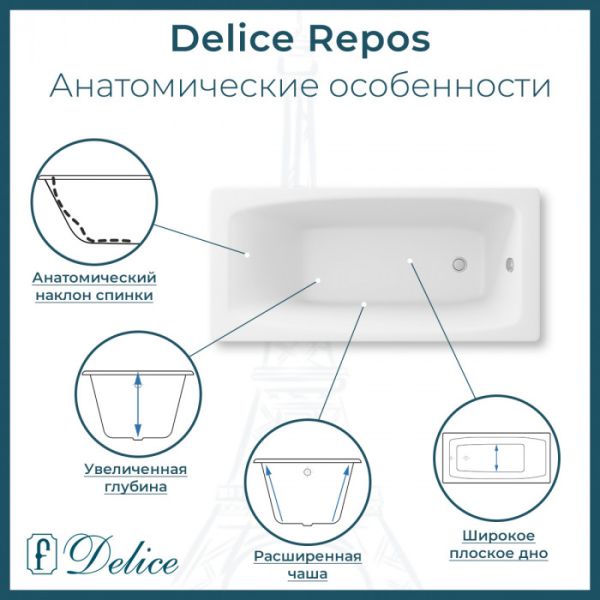 Ванна чугунная Delice Repos DLR 220507R 150x70см белый купить