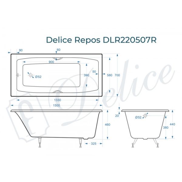 Ванна чугунная Delice Repos DLR 220507R 150x70см белый
