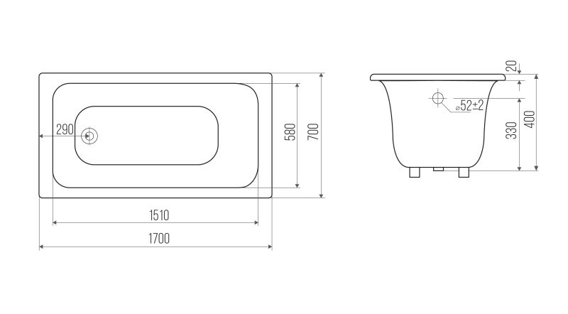 Стандартные размеры, см:170x70