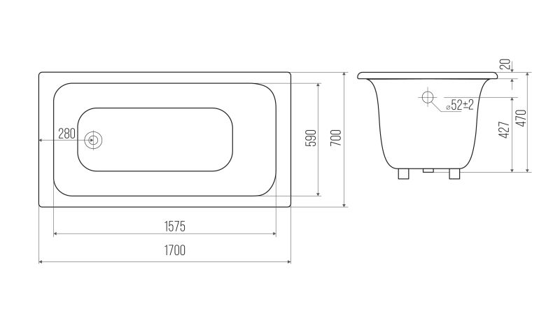 Ванна чугунная Goldman Comfort CF17070 170x70см с ножками