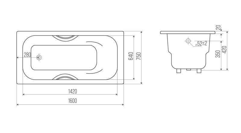 Ванна чугунная Goldman Donni DN16075 160x75см с ножками