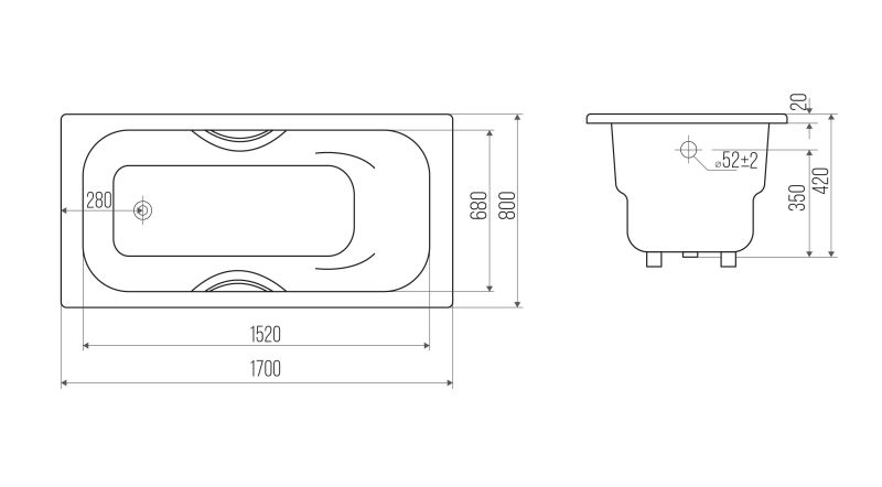 Ванна чугунная Goldman Donni DN17080 170x80см с ножками