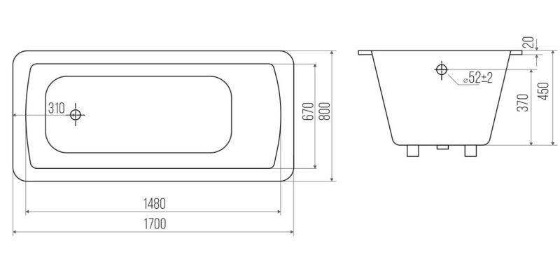 Ванна чугунная Goldman Elite ET17080 170x80см с ножками
