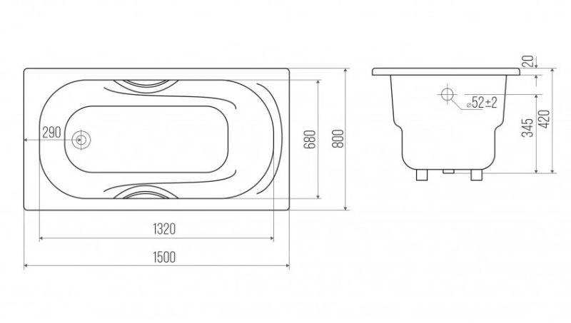 Ванна чугунная Goldman Nova NV15075 150x80см с ножками купить
