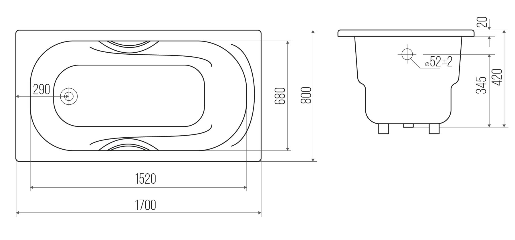 Ванна чугунная Goldman Nova NV17080 170x80см с ножками купить
