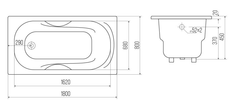 Ванна чугунная Goldman Nova NV18080 180x80см с ножками