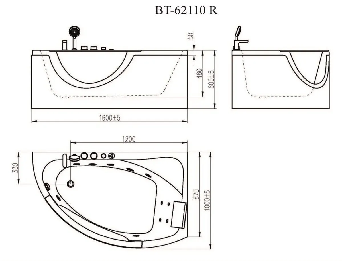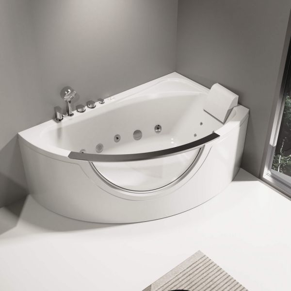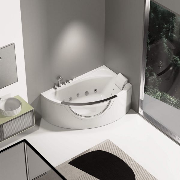 • Современные система гидромассажа с регулируемым подмесом воздуха для выбора интенсивности массажного потока: 5 больших и 4 малых спинных форсунок для гидромассажа;