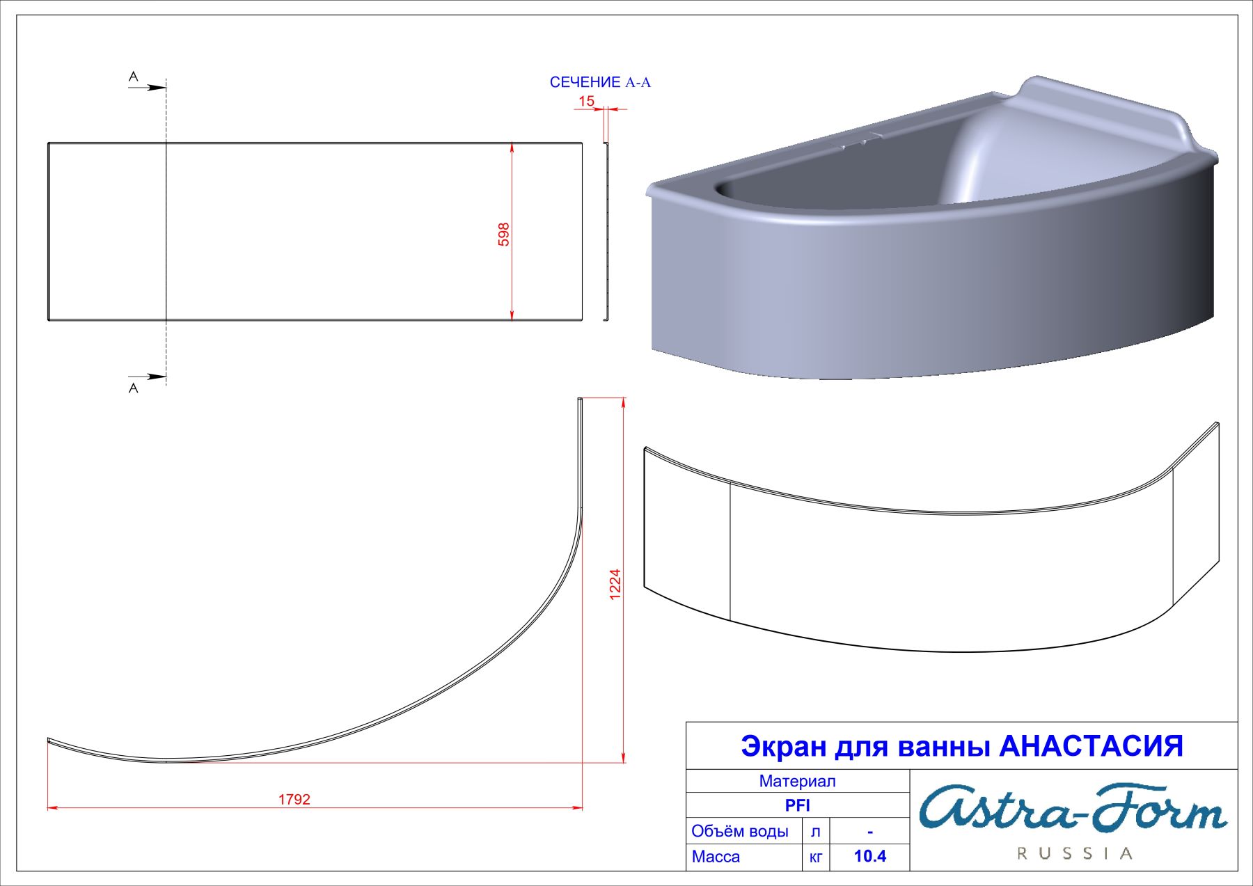 Ванна из искусственного камня Astra-Form Анастасия 01010024 правая 182x125 см белый глянец купить