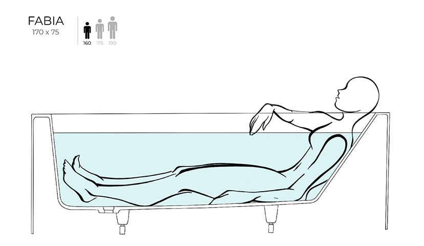 Овальная чаша и строгая геометрия экранов превращают модель FABIA в скульптуру, скромно занимающую место у стены ванной комнаты. Она притягивает взгляды. Внутри визуально цельного объёма скрывается купель с пологой спинкой, обещающей приватность и комфорт.