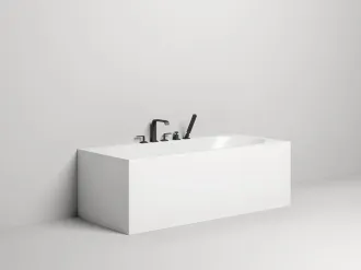 Овальная чаша и строгая геометрия экранов превращают модель FABIA в скульптуру, скромно занимающую место у стены ванной комнаты. И тем не менее она притягивает взгляды. Внутри визуально цельного объёма скрывается купель с пологой спинкой, обещающей приватность и комфорт.